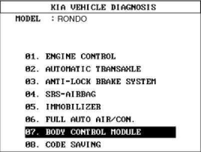 2. Select option "BODY CONTROL MODULE" and press ENTER.