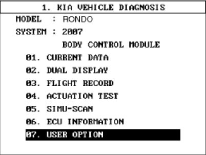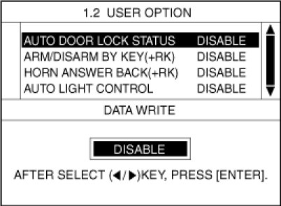 The BCM offers 4 items user option mode for a user convenience (AUTO DOOR LOCK, ARM/DISARM BY KEY, HORN ANSWER BACK, AUTO LIGHT CONTROL)
