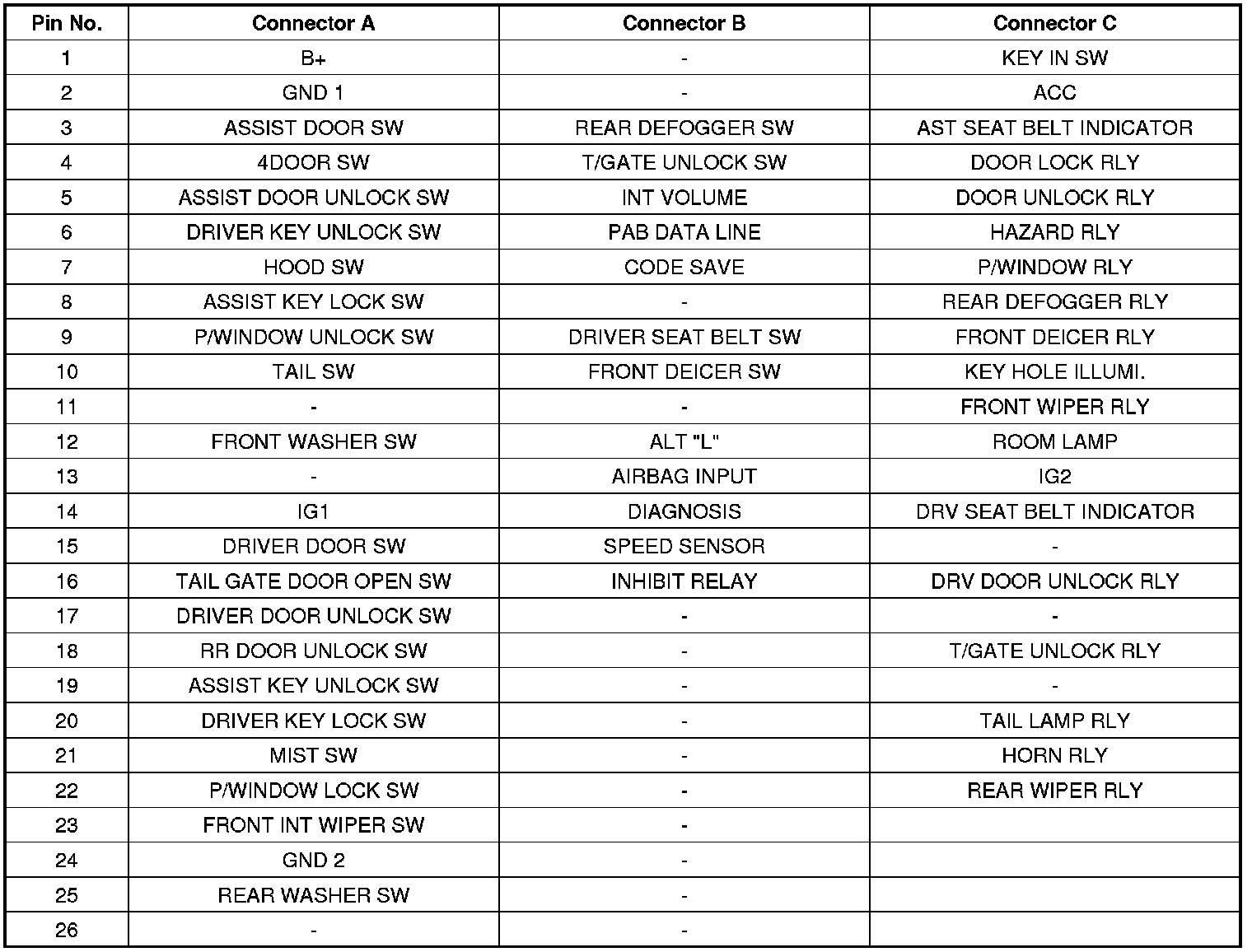 Pinout Values and Diagnostic Parameters