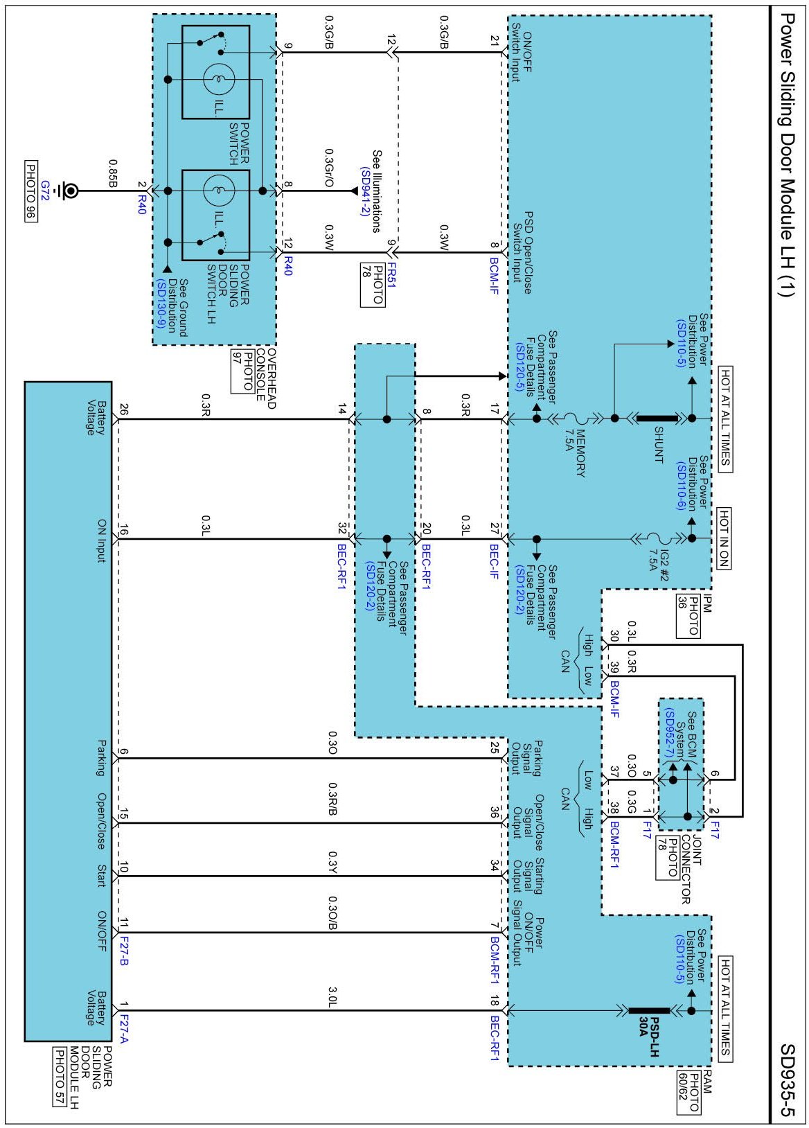 Power Sliding Door Module LH Connector Pin Outs: