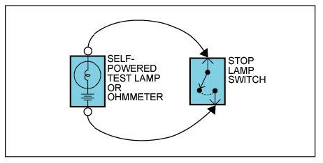 An ohmmeter can be used in place of a self-powered test lamp.