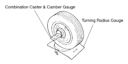 Wheel alignment refers to the angular relationship between the wheels, control arms, suspension and the ground. It deals with tire camber, caster, toe-in and wheel balancing. Proper wheel alignment and wheel balance insures a safe, quiet ride with minimal tire wear. This section assumes that all components are in good working condition. Performing this exercise may also detect any problem areas in the front suspension. It is advisable to replace defective components before attempting a wheel alignment.