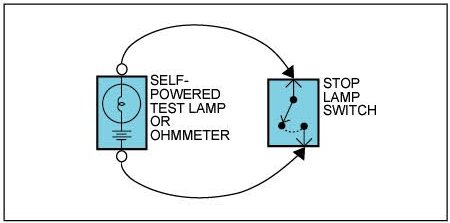 Use a self-powered test lamp or an ohmmeter to check for continuity.