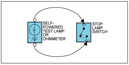 Use a self-powered test lamp or an ohmmeter to check for continuity. The ohmmeter shows how much resistance there is between two points along a circuit. Low resistance means good continuity.