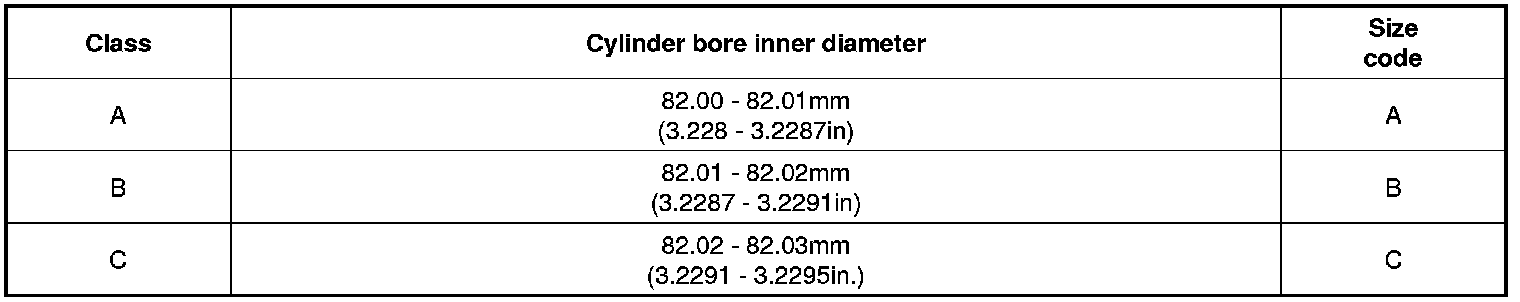 Standard diameter 82.00 - 82.03 mm (3.2283 - 3.2295 in)