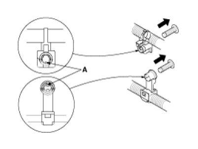 3. Slip pliers (A) under the clip base and through the hole at an angle, then squeeze the expansion tabs to release the clip.