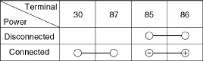 1. There should be continuity between the No.30 and No.87 terminals when power and ground are connected to the No.85 and No.86 terminals.
