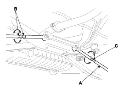 - After adjusting the tie rod(C), tighten both nuts(B) to the specified torque.