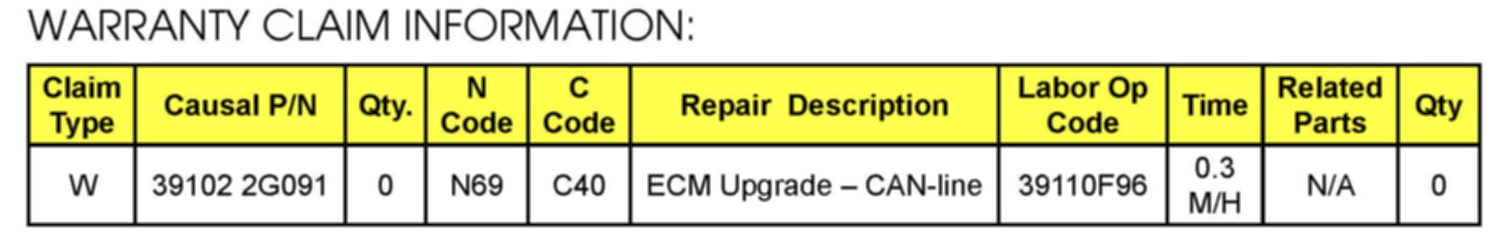 This bulletin provides the procedure to upgrade the Powertrain Control Module (PCM) of some 2010 Model Year Forte (TD) Sedan and Koup with 2.0L engines. This reflash has enhanced VCM logic to improve a rough idle condition at start-up or a MIL ON and stored DTC P0304 set at start-up. For confirmation that the latest reflash has been performed to a vehicle you are working on, verify ROM ID using the tables in this TSB.