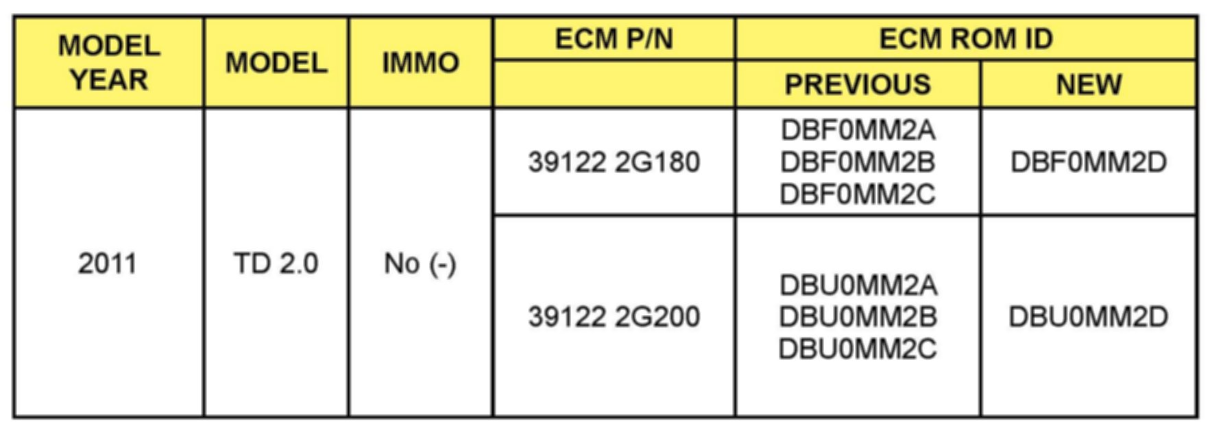 To verify the vehicle is affected, be sure to check the Calibration Identification of the vehicle's ECU's ROM ID and reference the information Table as necessary.