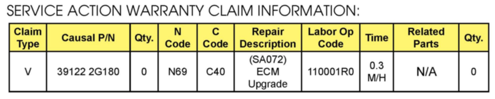 VIN Inquiry data for this repair is provided for tracking purposes only. Kia retailers should reference SA072 when accessing the WebDCS system.
