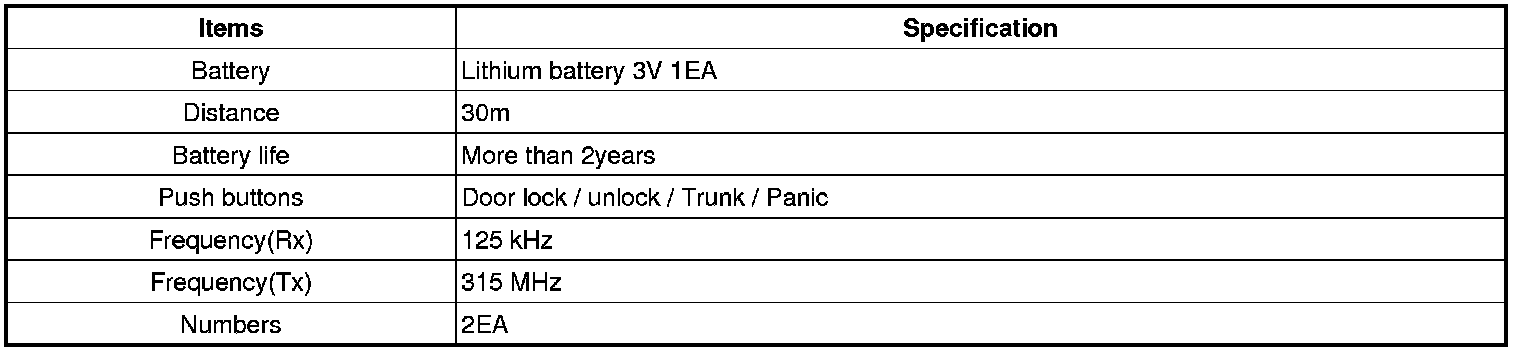 Home >> Kia >> 2010 >> Forte L4-2.4L >> Repair and Diagnosis >> Body and Frame >> Locks >> Keyless Entry >> Keyless Starting System >> Specifications