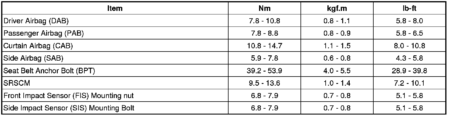 Tightening Torques