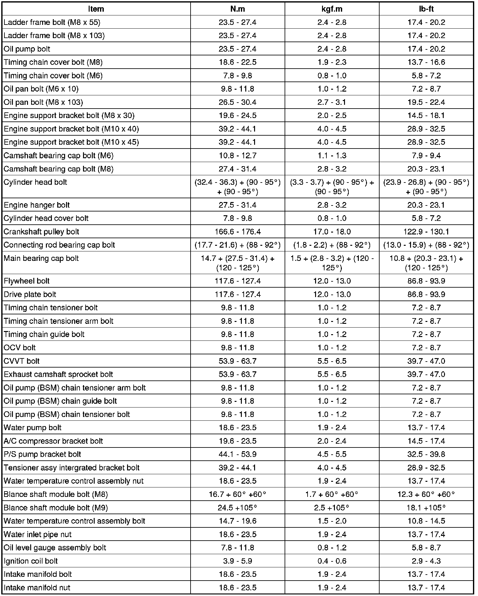 Tightening Torques