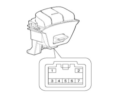 2. Measure resistance between terminals on the control switch when each function switch is ON (switch is depressed).