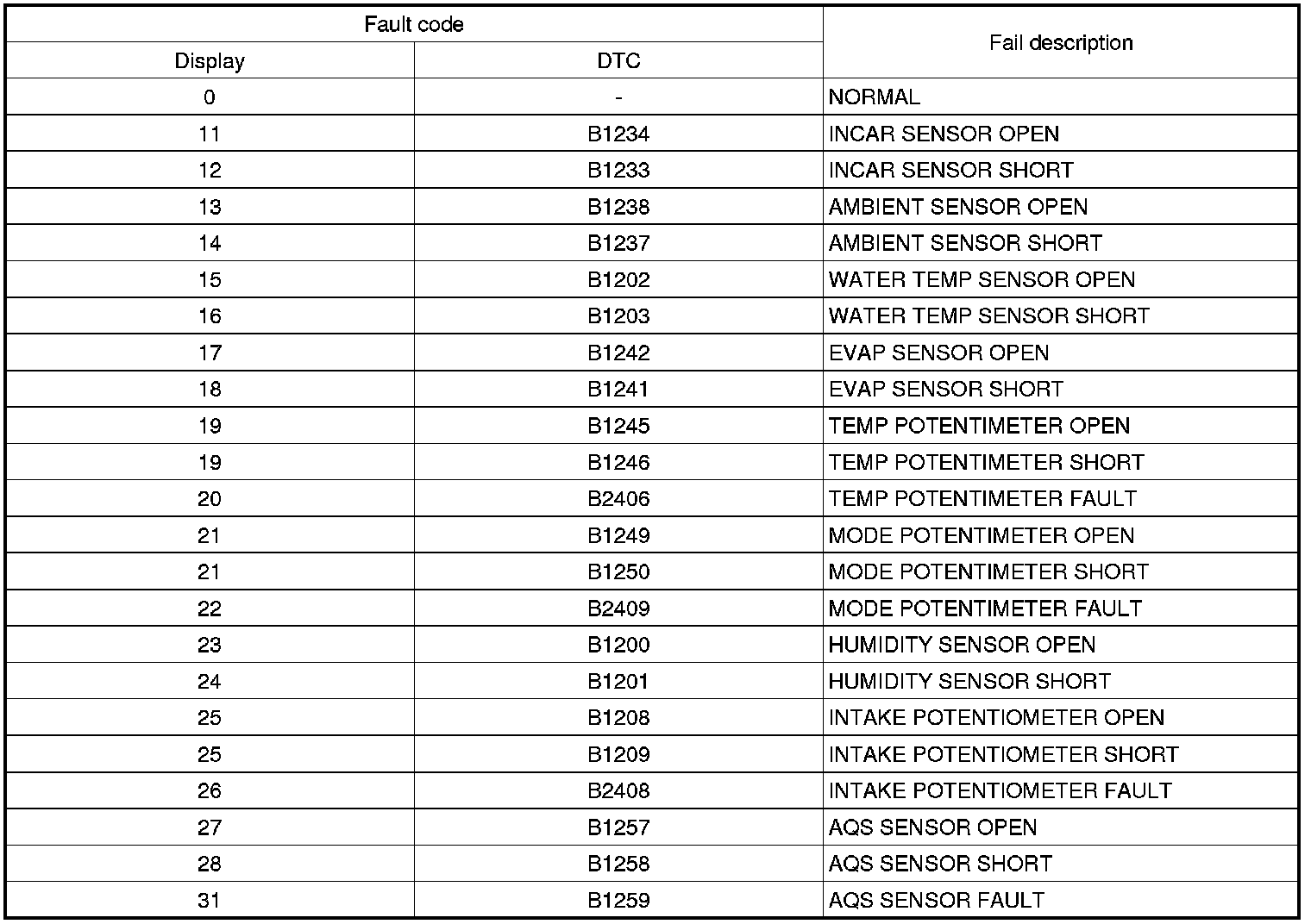 (1) In-car temperature sensor: Control with the value of 25°C(77°F)
