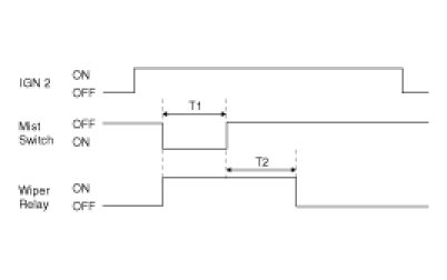(1) Under "IGN2 SWITCH = ON", WIPER RELAY is turned ON immediately from "Mist SWITCH = ON" if "Mist SWITCH = ON" for T1 , Wiper RELAY is turned OFF after T2.