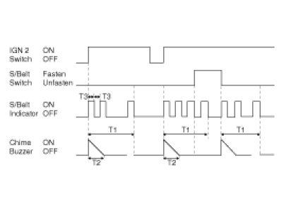(3) CHIME BUZZER's OUTPUT is OFF, WARNING LAMP output for remnant time if SEAT BELT SWITCH ON in time.