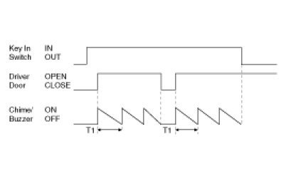 (1) Buzzer sounds every 1sec when DRIVER DOOR is opened under KEY IN SWITCH =IN.