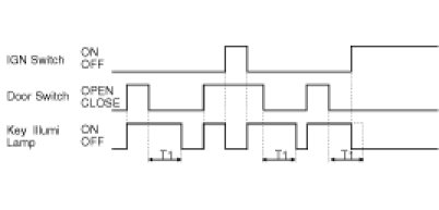 (2) KEY ILLUMI LAMP is turned ON for T1 at "DOOR = CLOSE" after the operation in (1).