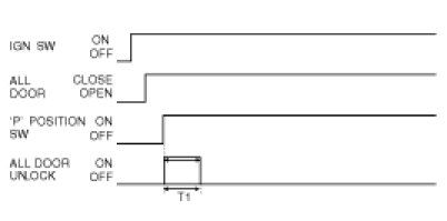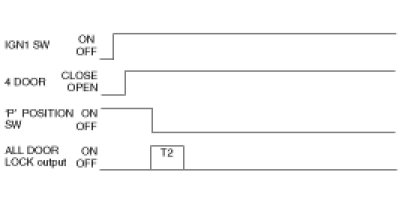 (1) When IGN Switch=ON & 4 DOOR CLOSE & ANY DOOR UNLOCK Switch is UNLOCK, ALL DOOR LOCK signal is output for T2(one time) if IGN1 Switch ON during T1 at 'P' POSITION Switch = ON -> OFF.