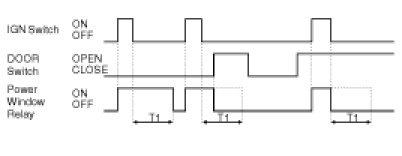 (3) POWER WINDOW RELAY is immediately turned OFF if DOOR is opened under POWER WINDOW RELAY ON for T1.