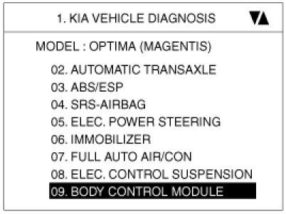 Home >> Kia >> 2010 >> Optima V6-2.7L >> Repair and Diagnosis >> Body and Frame >> Body Control Systems >> Body Control Module >> Testing and Inspection