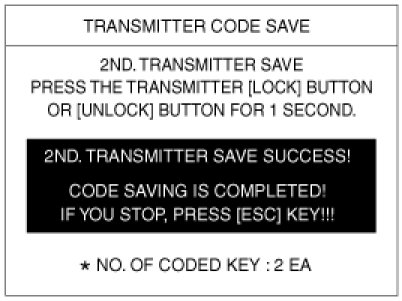 4. After removing the ignition key from key cylinder, push "ENTER" key to proceed to the next mode for code saving. Follow steps 1 to 4 and then code saving is completed.
