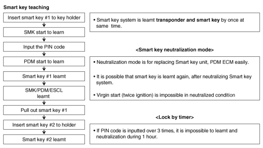 - PDM replacement: PDM is not learnt, SMK and SMART FOB are already learnt with same PIN code