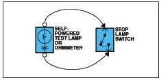 B. Connect one lead of a self-powered test lamp or ohmmeter to one end of the part of the circuit you wish to lest. If you are using an ohmmeter, hold the leads together and adjust the ohmmeter to read zero ohms.