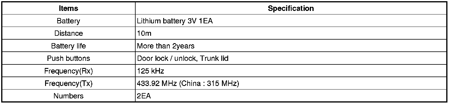 Keyless Starting System: Specifications