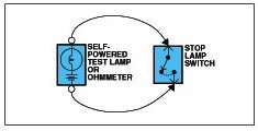 B. Connect one lead of a self-powered test lamp or ohmmeter to one end of the part of the circuit you wish to lest. If you are using an ohmmeter, hold the leads together and adjust the ohmmeter to read zero ohms.