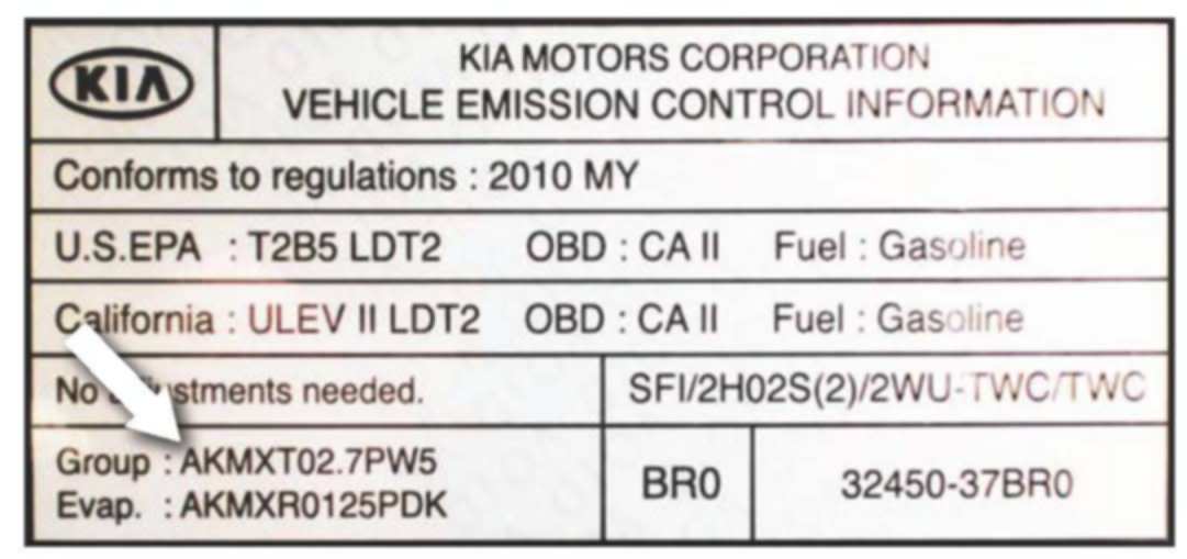 ^ Type "Group:" followed by the group number from the Vehicle Emission Control Information label in step 1.