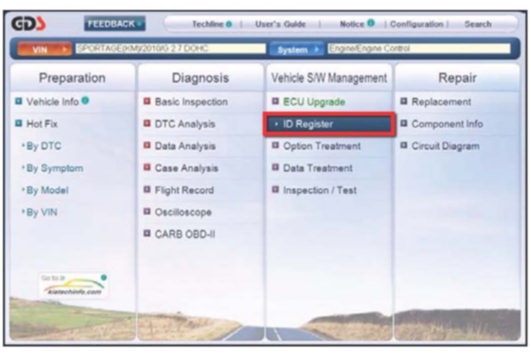 2. To start, use the Global Diagnostic System (GDS). Begin by clicking on "ID Register". Click on "Auto VIN" or manually enter vehicle information on the next screen.