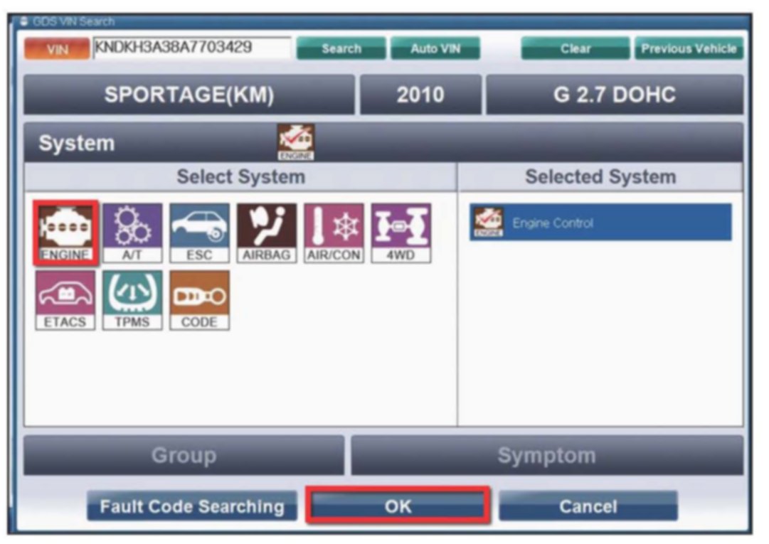 3. Choose "Engine" under "Select System" Click "OK" and follow screen instructions for connecting to vehicle.