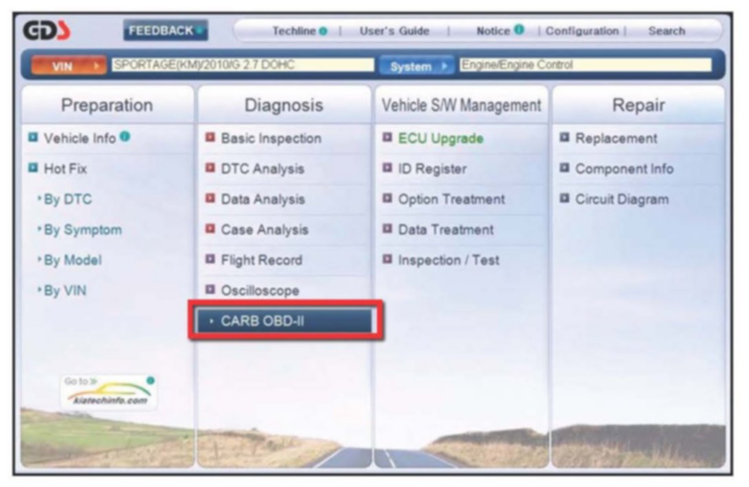Home >> Kia >> 2010 >> Rondo L4-2.4L >> Repair and Diagnosis >> Powertrain Management >> Computers and Control Systems >> Engine Control Module >> Technical Service Bulletins >> Emissions - California Emissions Data Extraction Info. >> Service Procedure