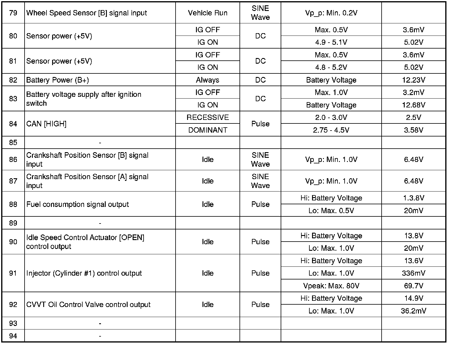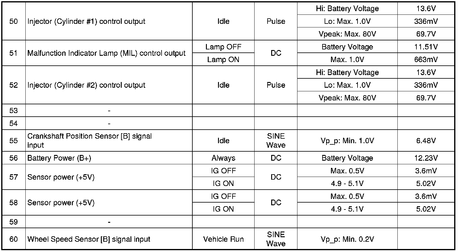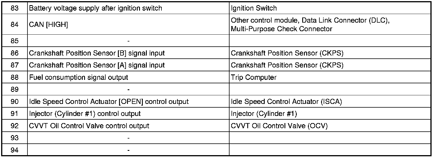 ECM Terminal And Input/Output signal