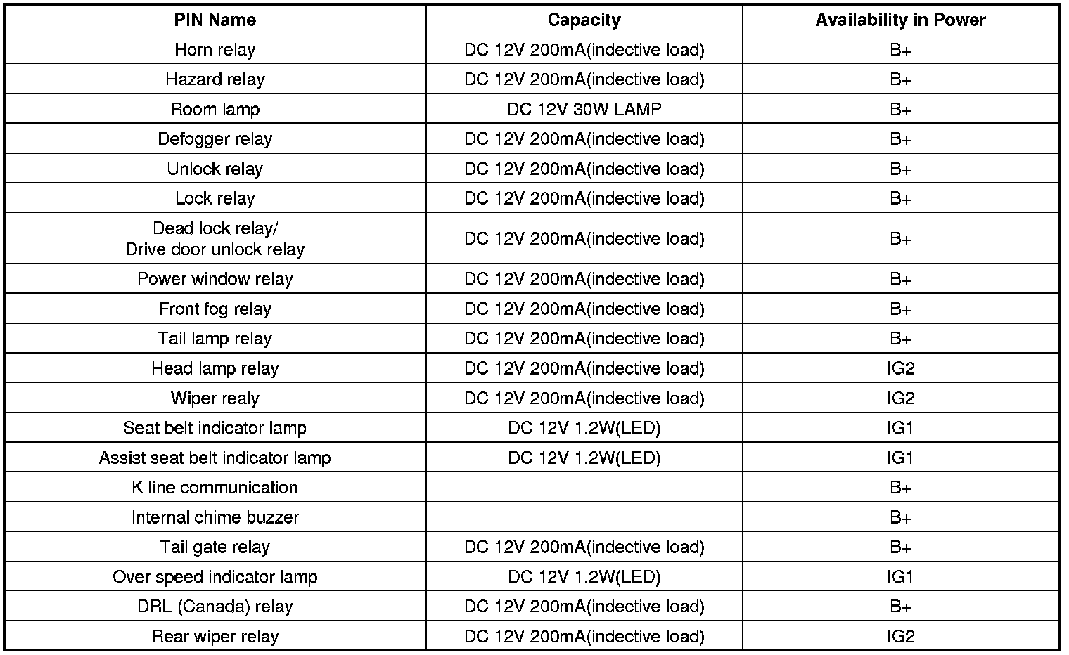 3. To consult the present input/out value of BCM, "Current DATA". It provides information of BCM input/output conditions of power supply, turn signal/brake lamp, headlamp, door locks, outside mirror, wiper, auto-light and transmitters etc.