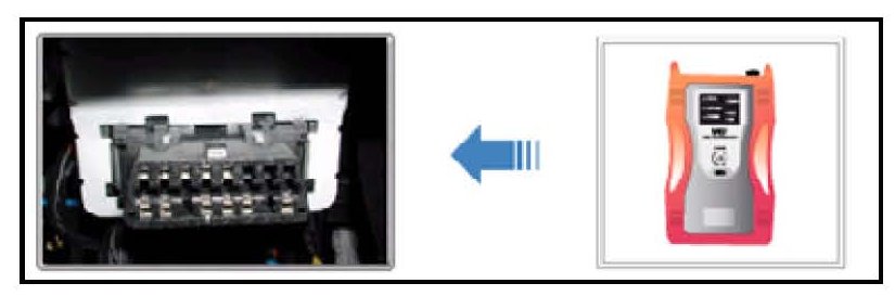 4. Connect the Main 16-pin DLC cable (GHDM - 241000) to the OBD-II connector, located under the driver's side of the instrument panel.