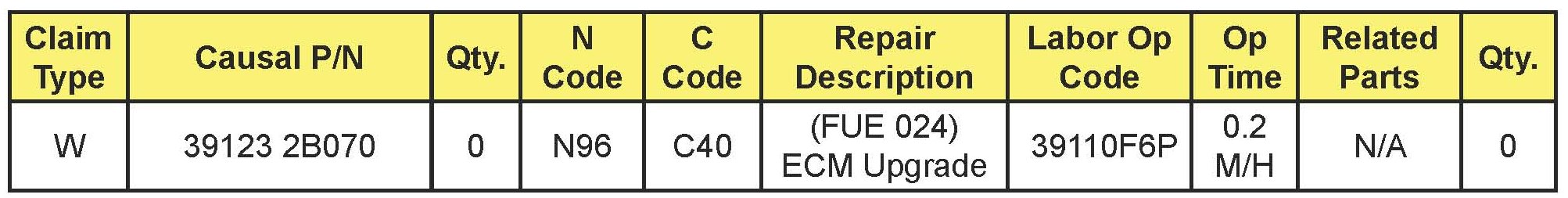 DO NOT replace any parts related to the DTCs mentioned unless proven to be the cause for the DTC AFTER the reflash has been performed. First perform the reflash as described in this bulletin, and verify that no DTC(s) will re-set. Should a DTC re-set after the reflash, diagnose according to KGIS. Parts replacement in conjunction with this TSB may be subject to Mandatory Parts Return and returned parts will be tested by KMA. Unnecessarily replaced parts will be subject to chargeback.