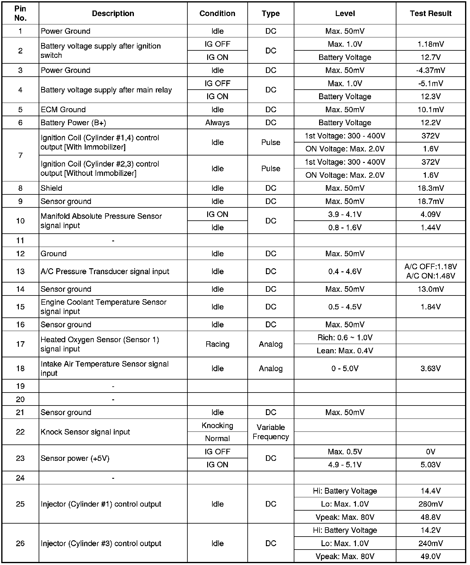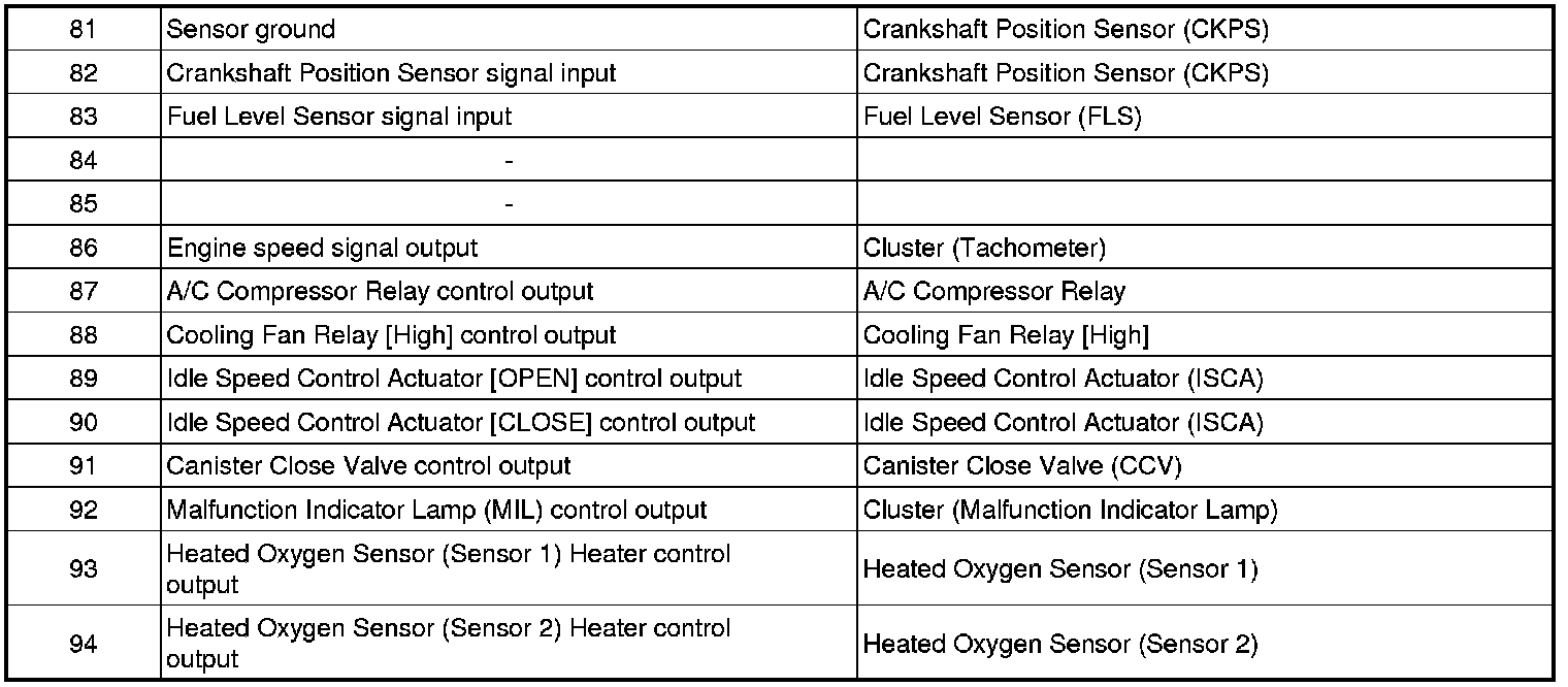 ECM Terminal And Input/Output signal