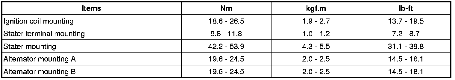 Starting and Charging: Specifications