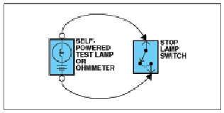 An ohmmeter can be used in place of a self-powered test lamp.