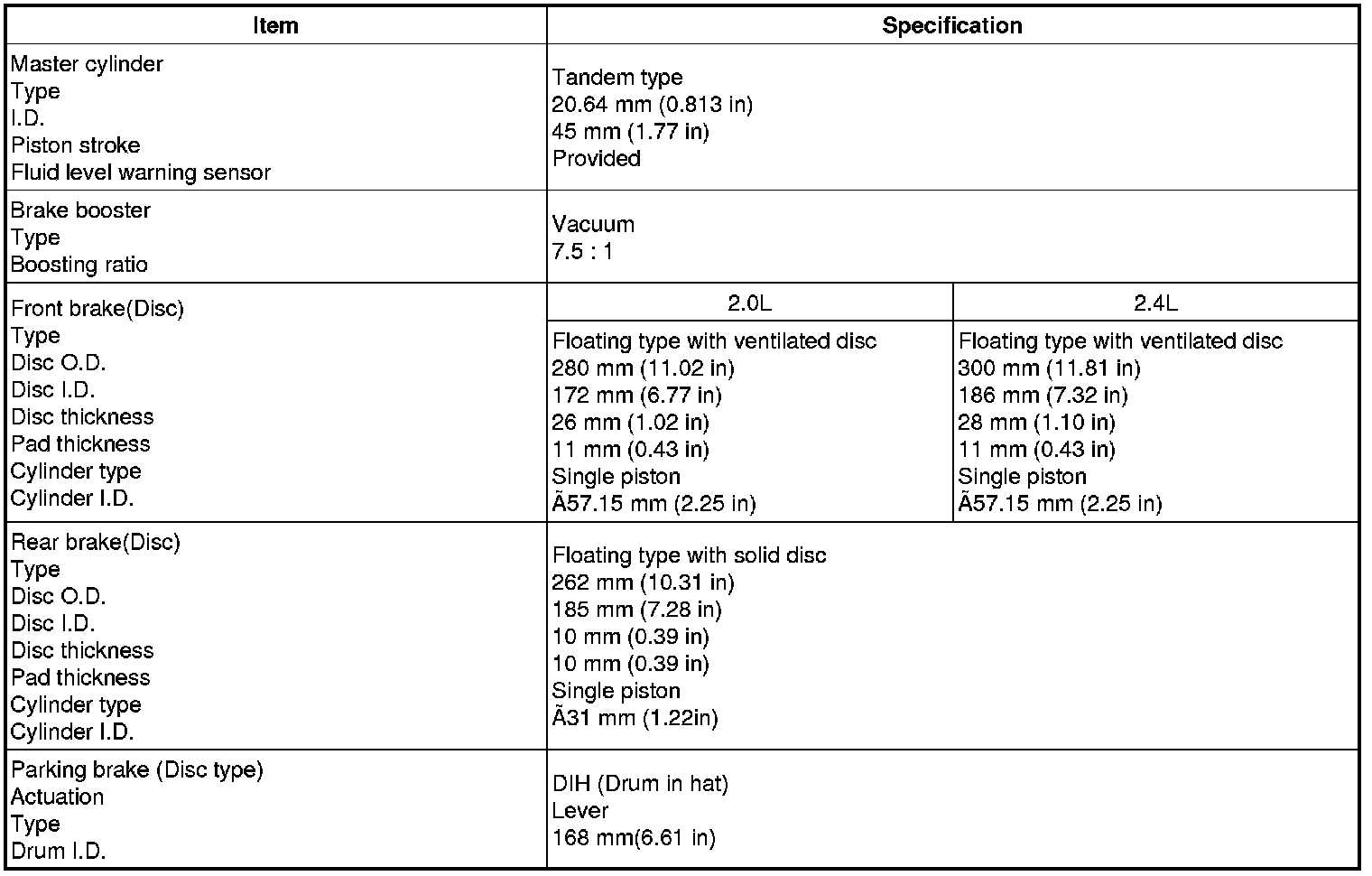 Brakes and Traction Control: Specifications