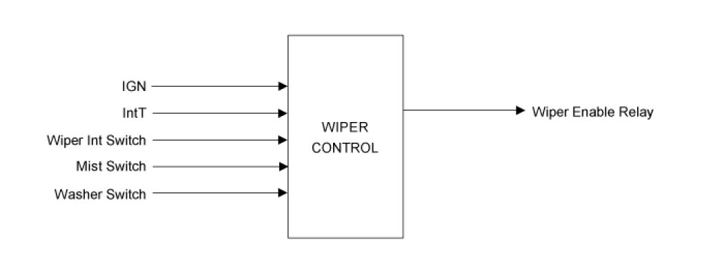 (3) Turn the output of WASHER INTERLOCKING WIPER when Washer switch is turned ON for more than 0.2sec during the operation of INT WIPER. If Washer switch is turned on for less than 0.2sec, turn the output of Wiper Enable Relay once.