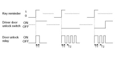(3) Turn Driver door unlock relay output ON during T2 when receiving TUNLOCK signal. However, turn Driver door unlock relay and Door unlock relay output during T2 if TUNLOCK is received within T1.