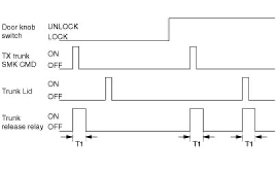 (2) If ALL DOOR UNLOCK and TRUNK LID is OFF -> ON, Trunk Release Relay is ON during T1.(SMK option)