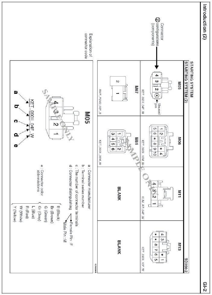 - It shows the front of the connector on the harness side when not to the harness connector. The terminal number on each connector can be obtained by following the pattern used in (5) connector view and numbering order. Unused terminals are marked with an asterisk (*).