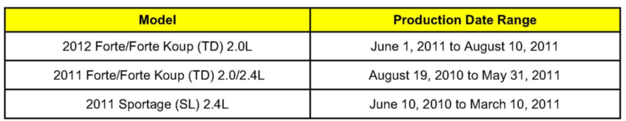 MODEL: 2011/12 MY Forte/Forte Koup (TD) / 2011MY Sportage (SL)