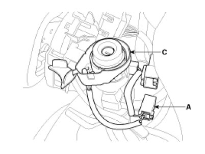 1. Disconnect the ignition switch connector(B) and key warning switch connector(A) from under the steering column.